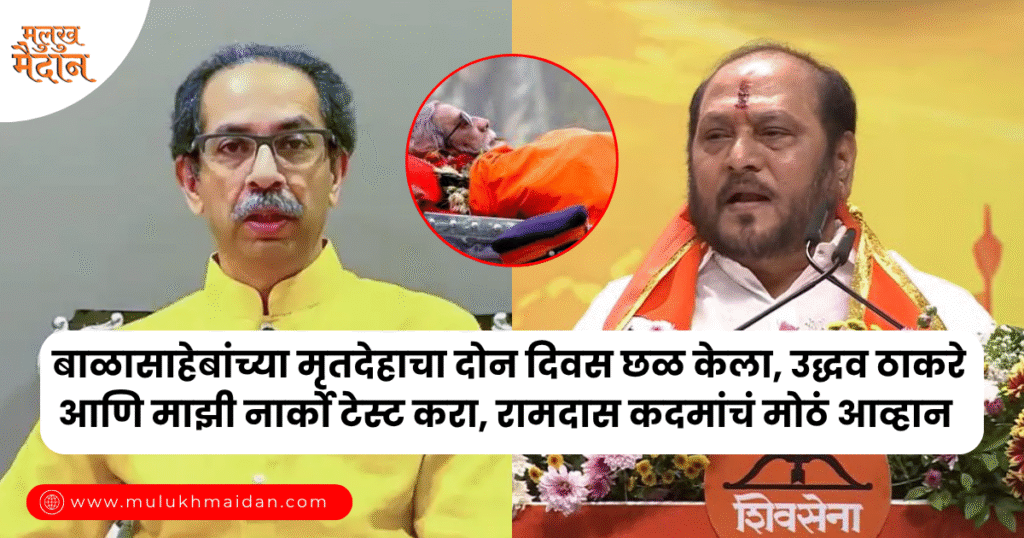 Ramdas Kadam On Balasaheb Thackeray : बाळासाहेब ठाकरे (Balasaheb Thackeray Death) यांच्या निधनानंतर त्यांच्या मृतदेहाबाबत काही खळबळजनक आरोप समोर आले आहेत. शिवसेना शिंदे गटाचे ज्येष्ठ नेते रामदास कदम (Ramdas Kadam) यांनी उद्धव ठाकरे (Uddhav Thackeray) यांच्यावर गंभीर आरोप केले आहेत. त्यांच्या मते, बाळासाहेबांच्या मृतदेहाचा दोन दिवस छळ केला गेला आणि त्यांच्या हातांचे ठसे घेतले गेले. या घटनेनंतर रामदास कदम यांनी पत्रकारांशी संवाद साधत उद्धव ठाकरेंला नार्को टेस्ट घेण्याचे आव्हान दिले आहे.