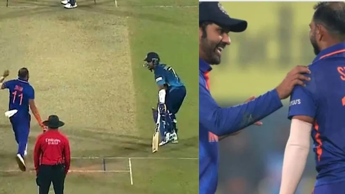 झाले असे की जेव्हा भारतीय गोलंदाज मोहम्मद शमी 50 व्या षटकातील चौथा चेंडू टाकण्यासाठी आला तेव्हा श्रीलंकेचा कर्णधार दासून शनाका नॉन-स्ट्रायकरच्या टोकाकडे म्हणजेच गोलंदाजाच्या दिशेने उभा होता पण बॉल टाकायच्या आधीच तो क्रीजमधून बाहेर पडला आणि मोहम्मद शमीने त्याला आऊट केले.