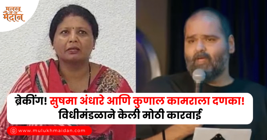 Sushma Andhare & Kunal Kamra : पावसाळी अधिवेशनात मोठी खळबळ उडवणाऱ्या मुद्द्यांपैकी एक म्हणजे शिवसेना (Thackeray Group) उपनेत्या सुषमा अंधारे (Sushma Andhare) आणि विनोदी कलाकार कुणाल कामरा (Kunal Kamra) यांच्या विरोधात हक्कभंग प्रस्तावाला मंजुरी देण्यात आली आहे. मागील अधिवेशनात या दोघांवर हक्कभंगाची मागणी करण्यात आली होती, ज्यावर आता विधानपरिषदेत शिक्कामोर्तब करण्यात आले आहे.