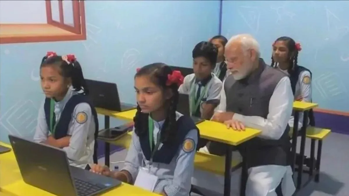 गुजरातमध्ये आलेले पंतप्रधान नरेंद्र मोदी (Narendra Modi) यांनी आज गांधीनगरमध्ये मिशन स्कूल ऑफ एक्सलन्सचे (Mission School Of Excellence) उद्घाटन केले. यादरम्यान पीएम मोदींनी वर्गात ...